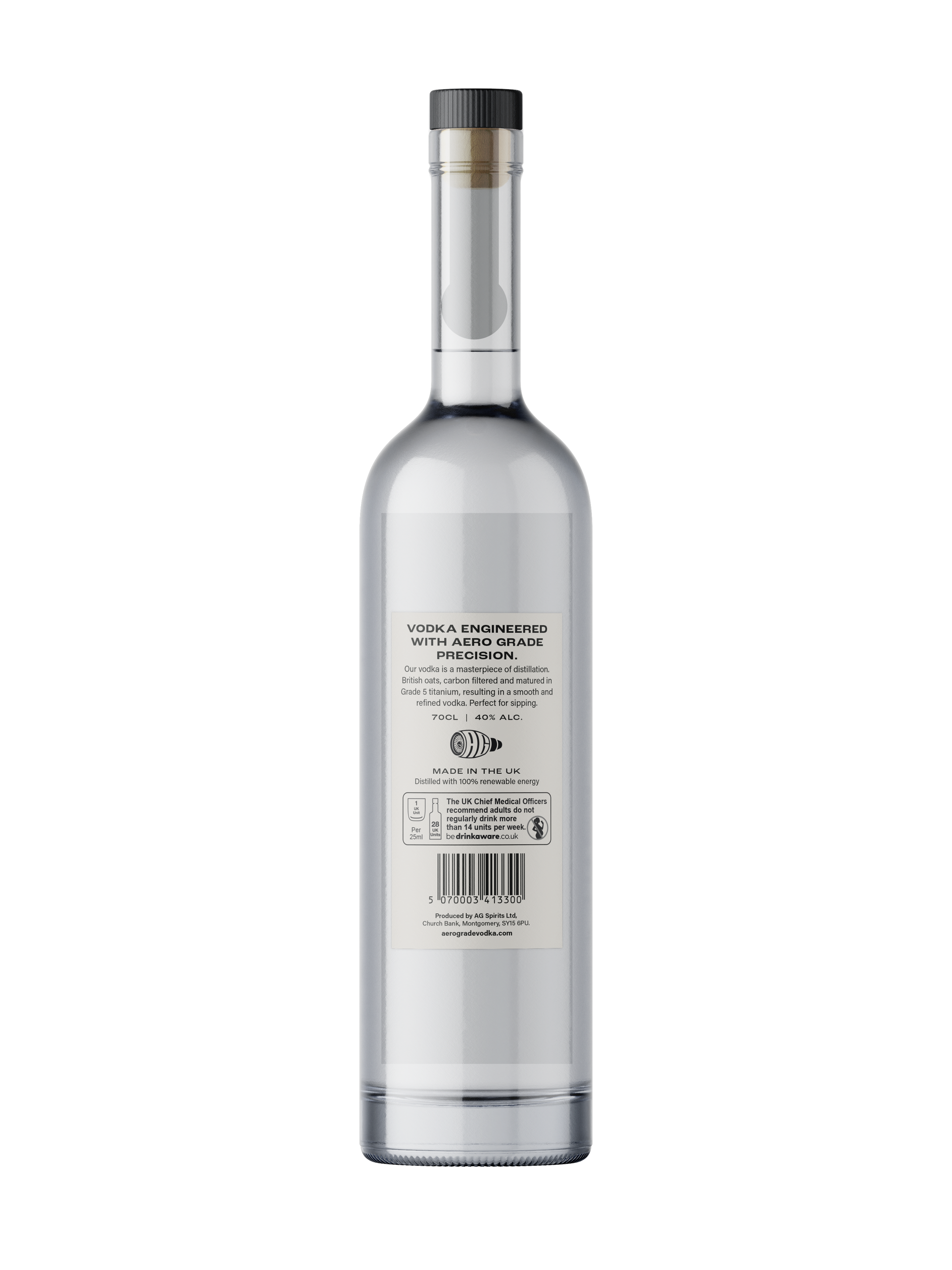 Single bottle (70cl) of premium AeroGrade Vodka, designed and manufactured with Aerospace precision.